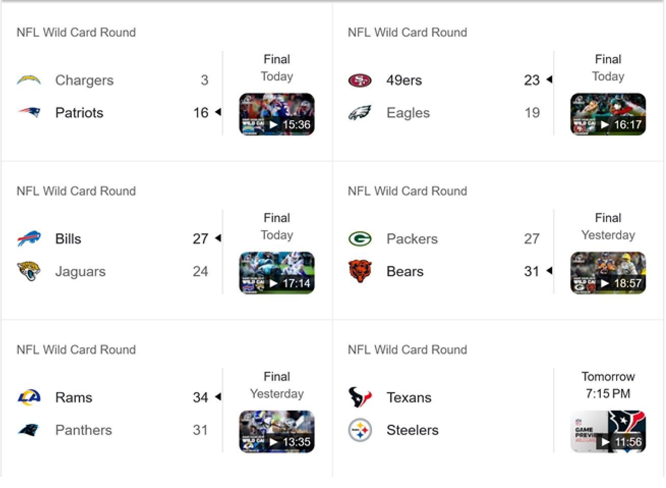NFL WILD CARD GAMES!